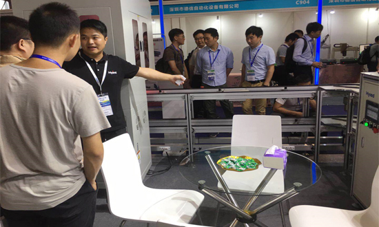 在此次展會中,恒亞可謂是傾力而出,幾大主力產品紛紛登場,展出了HY-350T離線式雙工位曲線分板機、HY-350AT 在線式雙工位曲線分板機、模塊化輸送系統、HY-LS500機器人視覺螺絲機等一系列高智能自動化設備,其中在線分板機、離線分板機等設備,完美解決了各種pcb板、LED鋁基板、cob基板、銅基板、FR-4基板、紙基板、玻纖板等一系列的切割分板難題,為廣大客戶提升分板效率和產能提供了巨大推力,在自動化分板切割發展史上具有重要的意義。